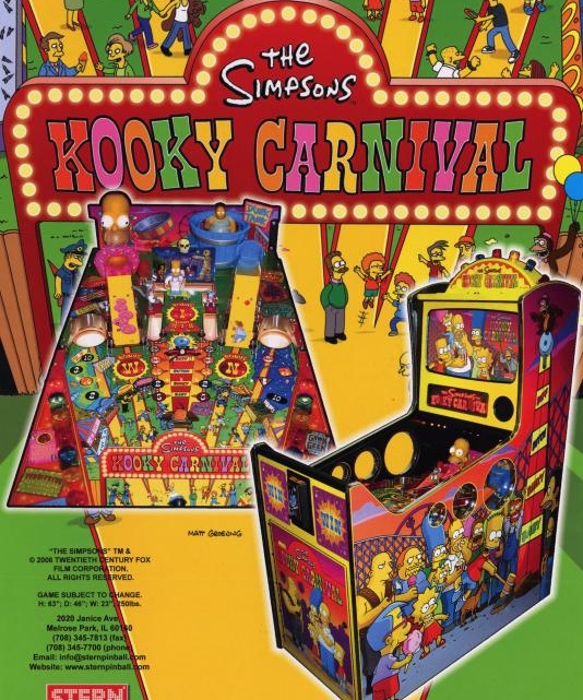 Największy producent fliperów na świecie, amerykański Stern Pinball ma w swoim katalogu produktów także automaty redemption. Najnowszy model to The Simpsons Kooky Carnival. Zaprojektował go, korzystając z licencji na produkty związane z serialem, nowy nabytek Sterna – Dennis Nordman.