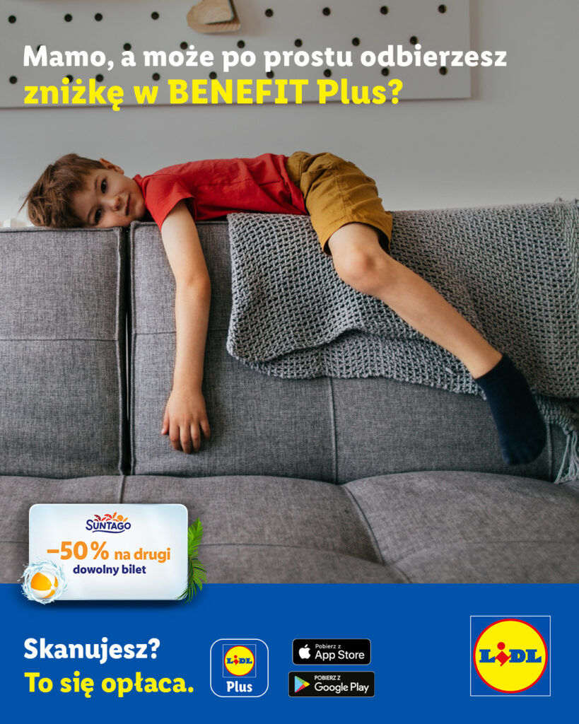Użytkownicy aplikacji Lidl Plus mogą w kwietniu skorzystać z nowej oferty przygotowanej we współpracy z Suntago. W ramach programu Benefit Plus dostępny jest 50-procentowy rabat na drugi bilet do największego zadaszonego parku wodnego w Europie.