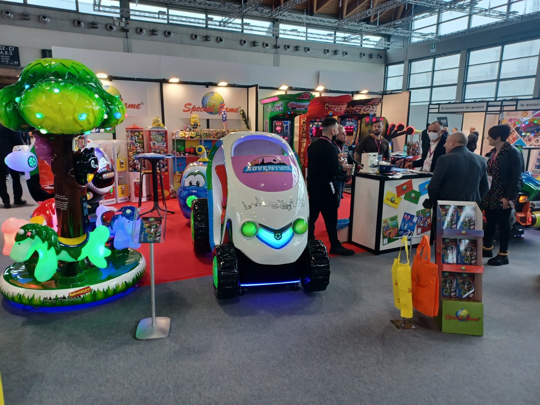 Dużą ofertę symulatorów i automatów VR prezentowało Gieffe, bujaki, mini karuzele i bujaki można było oglądać na stoiskach Mondo Giochi i Special Games. Na tym ostatnim gościły także automaty z Polski.