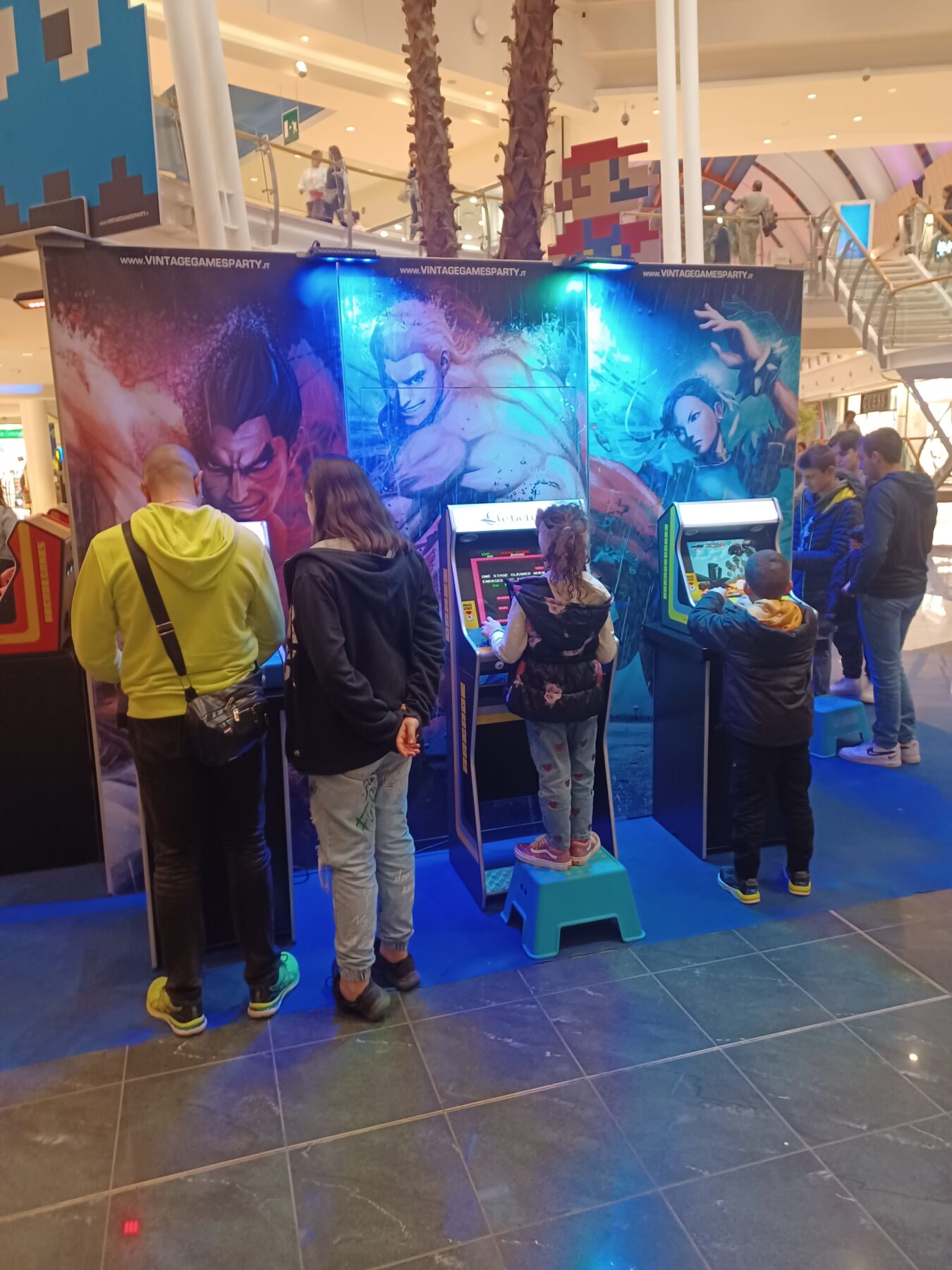 Gry umieszczono w obudowach stylizowanych na wiekowe już Gry TV w odmianach bartop i upright. Widziałem Street Fightera i Mortal Kombat, a także Pac Mana i Donkey Konga.