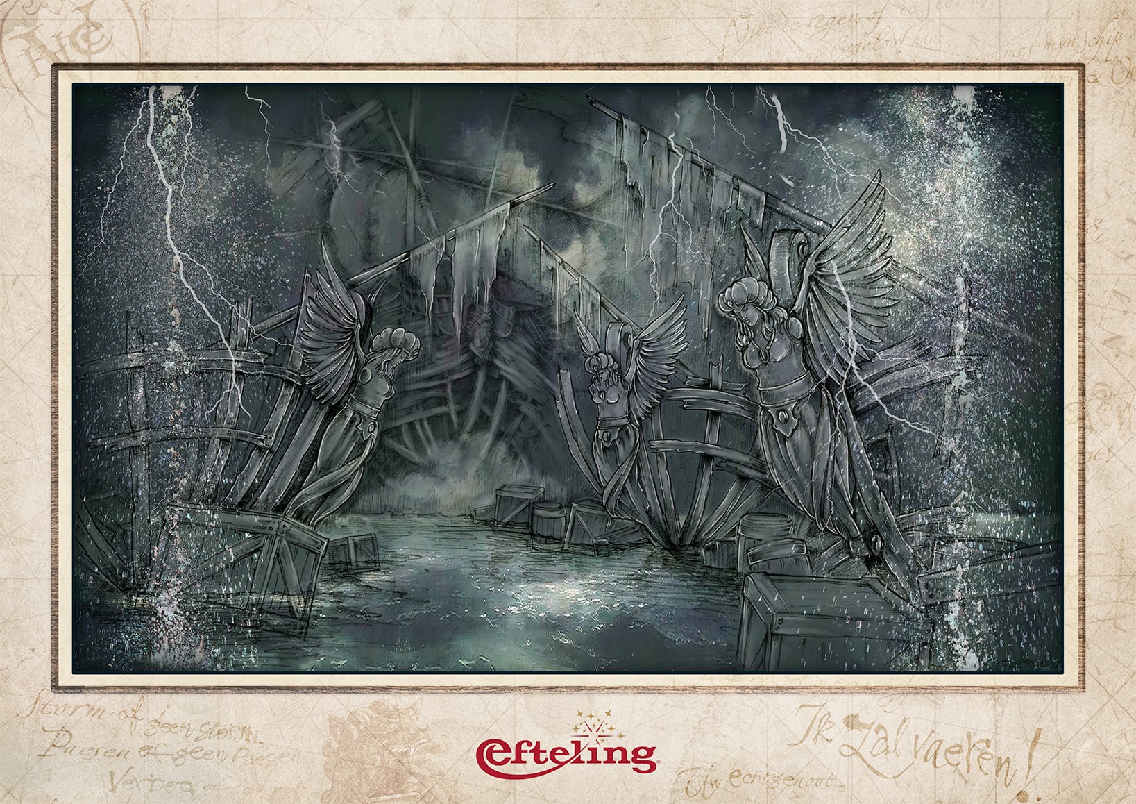 – Kurtyna deszczu, gdy duch statku widmo nagle zbliża się do pasażerów podczas jazdy, wymagała dodatkowych, systematycznych konserwacji. Dlatego, podczas tegorocznych regularnych prac konserwacyjnych, przeprowadzanych w okresie zimowym, zdecydowaliśmy się ją zastąpić czymś nowym – wyjaśnia Karel Willemen, starszy projektant w Eftelingu. Jak tłumaczy, począwszy od 1 kwietnia, goście parku będą żeglować po cmentarzysku porzuconych wraków statków, do stworzenia którego wykorzystano m.in. duże, drewniane figury wykonane przed laty na potrzeby atrakcji, ale nigdy nie zamontowane.