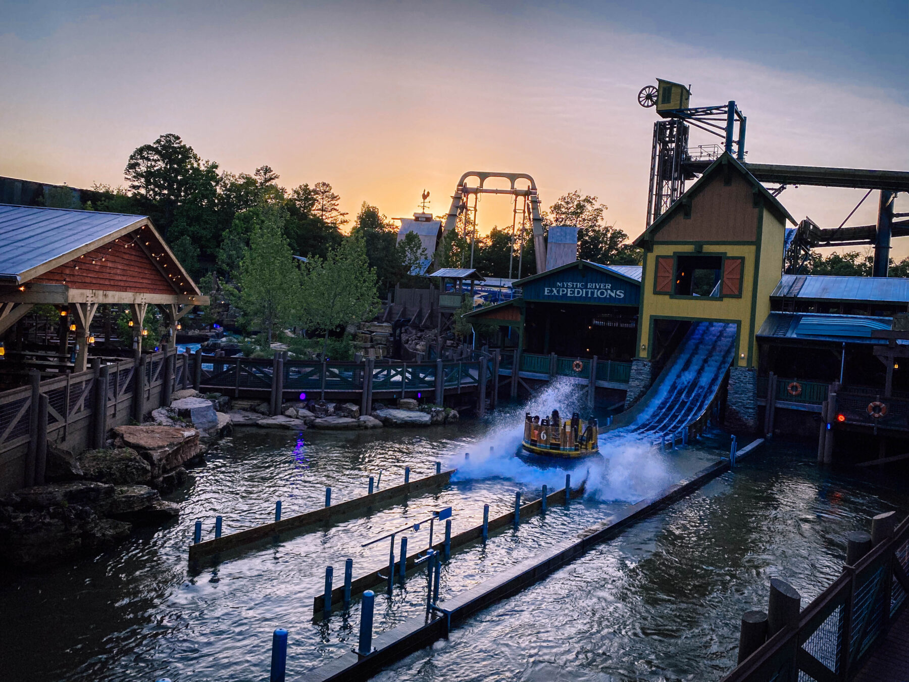 Inwestycja o wartości 23 milionów dolarów, Mystic River Falls, jest uważana za cud inżynierii w globalnej branży atrakcji dzięki jedynej w swoim rodzaju obrotowej, 4-platformowej, 8-piętrowej windzie. Mystic River Falls, osadzone w autentycznym stylu przypominającym molo miasteczek nadrzecznych z dawnych lat, jest głównym tematem zupełnie nowego obszaru zwanego Rivertown, który obejmuje nową wędzarnię Rivertown, z szeregiem wędlin wędzonych na miejscu i nową piekarnię, w której goście widzą piekarzy tworzących legendarne specjały.