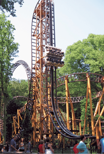 Trzy 8-miejscowe wózki nurkują z wysokości 22 metrów prawie pionowo w dół z prędkością 70 km/h. Sukces Falcona był miłą odmianą po kłopotach z poprzednim, niedoszłym coasterem.