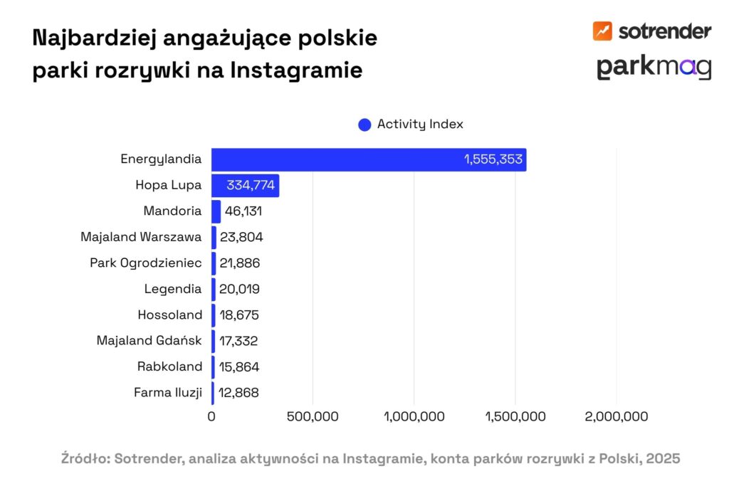 Warto dodać, że park rozrywki w Zatorze publikuje na Instagramie bardzo często. Jak podaje Sotrender, w całym 2025 r. na Instagramie Energylandii pojawiło się ponad tysiąc postów i filmów. To dwa razy więcej niż w drugim najbardziej aktywnym parku, Farmie Iluzji, który i tak osiągnął imponujący wynik 570 postów w skali roku, a pod względem aktywności obserwatorów zamyka TOP10 parków w Polsce.