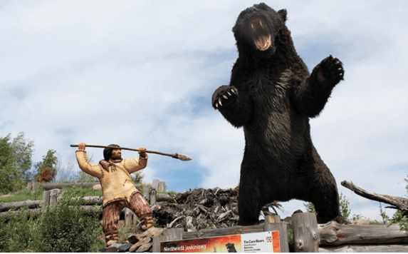 W pierwszej części dydaktycznego szlaku, oprócz dinozaurów, napotkamy na chatę prezentującą zwyczaje życia neandertali, tor do jazdy pojazdami Filnstonów, kolejkę jeżdżącą wśród dinozaurów, gastronomię w chatce hobbita Frodo czy po prostu będziemy mogli zrobić sobie zdjęcie z Gandalfem Szarym. Jeśli zmorzy nas już to wszystko, będziemy mogli puścić dymka w specjalnie wyznaczonych do tego strefach – bardzo ciekawy pomysł. W tej części możemy też zobaczyć tradycyjnie urządzone przepiękne chatki, gdzie poznamy m.in. jak drzewiej się żyło i mieszkało.