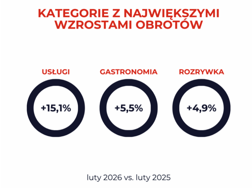 Segment rozrywki odnotował wzrost obrotów na poziomie +4,9 proc. r/r. Choć dynamika ta pozostaje niższa niż w przypadku usług (+15,1 proc.), rozrywka – obok gastronomii (+5,5 proc.) oraz sektora zdrowia i urody (+4,4 proc.) – konsekwentnie utrzymuje się w grupie segmentów o ponadprzeciętnych wynikach.
