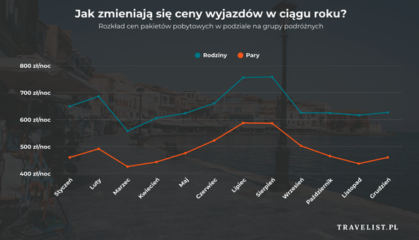 Oznacza to, że pary znacznie częściej korzystają z ofert poza sezonem, natomiast rodziny koncentrują się na okresach wynikających z kalendarza szkolnego.