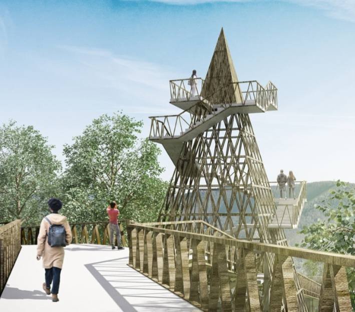 Najbardziej zaawansowanym technicznie elementem inwestycji będzie budowa ścieżki w koronach drzew, zlokalizowanej na zboczach wzgórza Ferdel, poniżej istniejącej już wieży widokowej. Obiekt, który określany jest mianem „leśnego mola”, będzie miał formę wyprowadzonej bezpośrednio ze zbocza ścieżki, której zwieńczeniem będzie imponująca, przeszklona platforma widokowa.