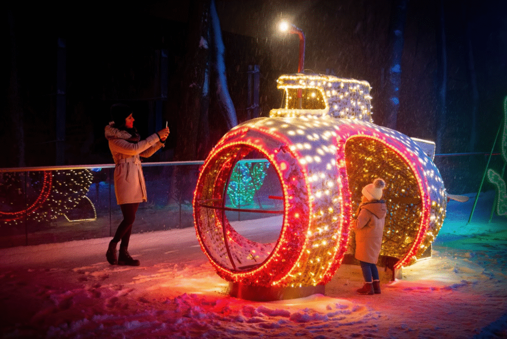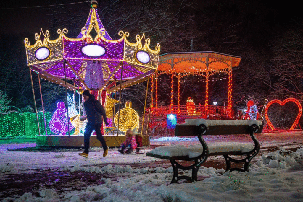 Charakter dekoracji dla parków rozrywki jest też trochę inny niż dla miast. Przykładowo, w parku rozrywki Legendia dekorujemy cały teren, tworząc przestrzeń, która funkcjonuje jako biletowana atrakcja przez cały sezon zimowy. Tam światło i tematyczne dekoracje pozwalają na otwarcie parku zimą, kiedy o 16:00 już zapada zmrok. Legenda uruchamia wtedy kilkanaście swoich standardowych atrakcji, tworząc efektowny miks parku rozrywki i ogrodu świateł.